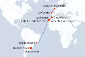 Itinerario : Buenos Aires, Montevideo, NAVIGATION, Rio de Janeiro, Las Palmas, Santa Cruz de Tenerife, Arrecife (Lanzarote), Casablanca, La Coruña, Southampton