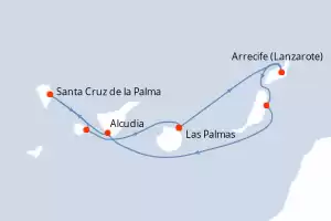 Itinerario : Las Palmas, Arrecife (Lanzarote), Puerto del Rosario, Alcudia, Santa Cruz de la Palma, San Sebastian de la gomera, Las Palmas