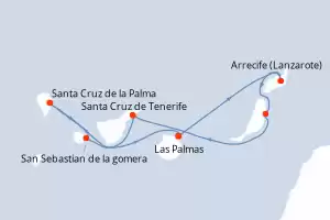 Itinerario : Las Palmas, Arrecife (Lanzarote), Puerto del Rosario, Santa Cruz de Tenerife, Santa Cruz de la Palma, San Sebastian de la gomera, Las Palmas
