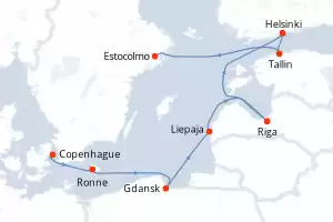 Itinerario : Copenhague, Ronne, Gdansk, Liepaja, Riga, Helsinki, Tallin, Estocolmo