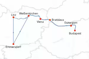 Itinerario : Viena, Esztergom, Budapest, Bratislava, Weißenkirchen, Emmersdorf, Linz, Viena